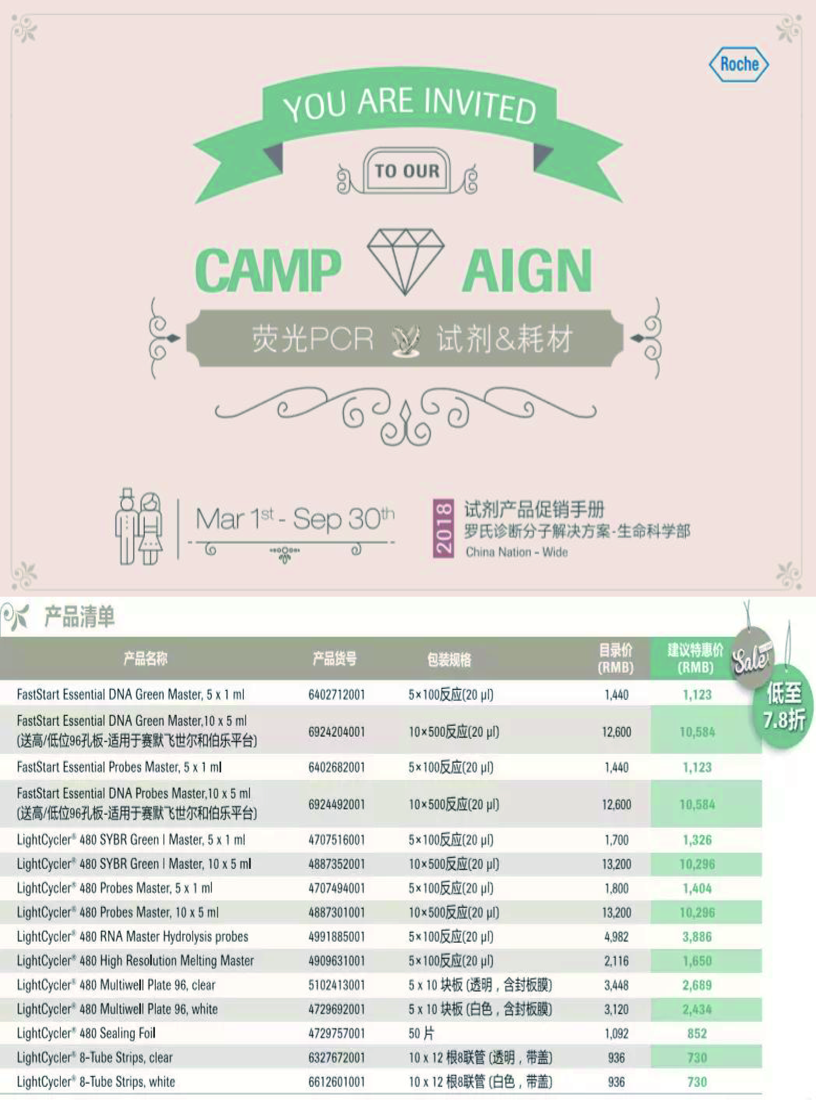 罗氏诊断荧光PCR试剂&耗材促销火热进行中!2018-09-06 10:11:00.0