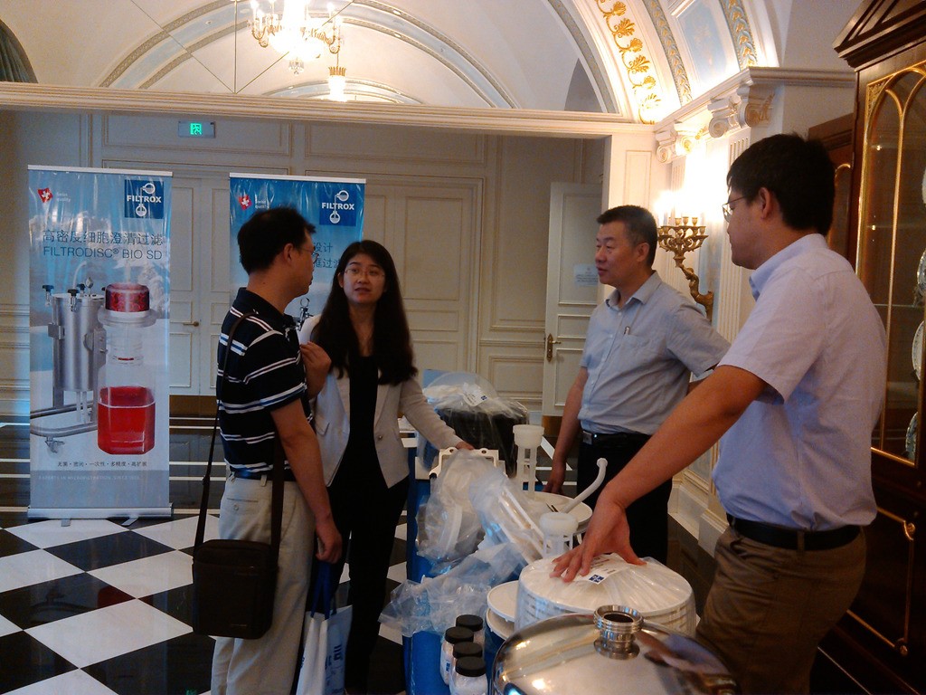 天津天士力集团、瑞普生物、强微特生物、华立达生物、协和干细胞基因工程有限公司、三箭生物、红日金博达生物、耀宇生物、康希诺生物、天津工业生物技术研究所、大成前瞻生物科技研发有限公司、诺维信等多家生物制药领先企业参加了本次研讨会。会议围绕细胞放大培养现状及发展趋势、如何安全高效过滤、毛细管电泳快速准确检测样品展开讨论,分享了在上游及检测技术的成功经验,每位嘉宾演讲后还有精彩的抽奖环节。其中,BD生物科学产品专家徐佳杰博士就目前细菌及细胞培养过程中如何更好选择培养基、添加物、更优开发高产药物做了精彩的演讲,尤其重点讲到高级生物工艺---Difco和BBL的培养基和添加物已经成为许多药物及疫苗制备过程中的一种关键组成部分,会场讨论气氛十分热烈。另外,在对中空纤维watersep在稳态、连续管道化培养阶段的具体环节进行讨论时,会议现场一度处于讨论的热潮之中,参会嘉宾与演讲嘉宾首席科学家朱希灿结合自身多年的实践经验一同向参会者带来了一次空前的灌流培养工艺大盛宴,而现场watersep细胞截留装置的演示更是吸引了参会者浓厚的兴趣与咨询。研讨会在热烈的掌声中完美落下帷幕,下一届期待你的参与!